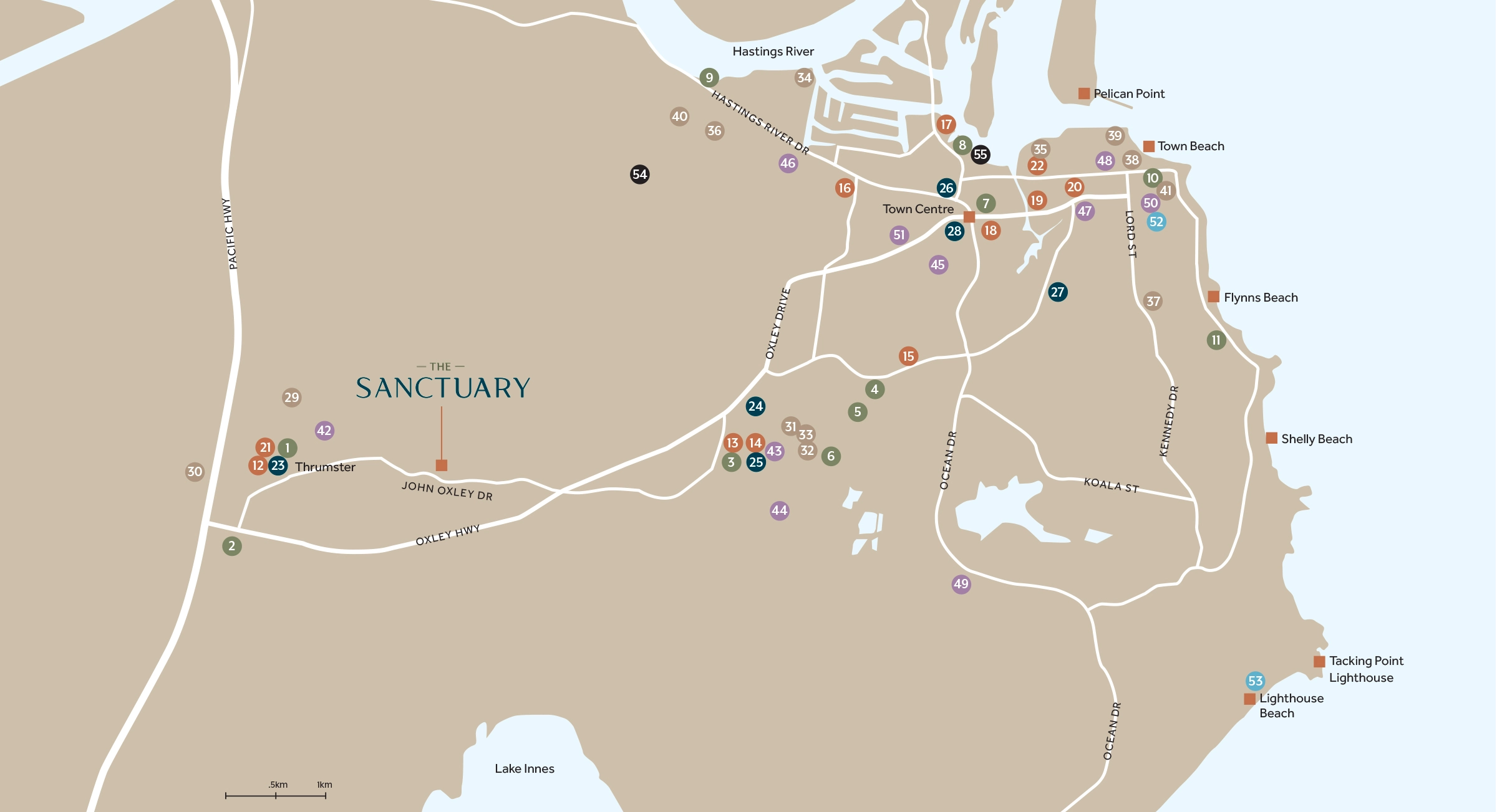Within a short drive of The Sanctuary you’ll find nearby amenities including shopping centres, cinemas, 2 hospitals and schools. The region’s best educational facilities including childcare centres, K-12 educational colleges and Charles Sturt University are all within easy reach. Plus Port Macquarie’s newest shopping destination, Sovereign Place Town Centre, is just a two-minute drive from The Sanctuary. This new centre features everyday conveniences including grocery shopping, dining choices, liquor supplies, pharmaceutical and more.